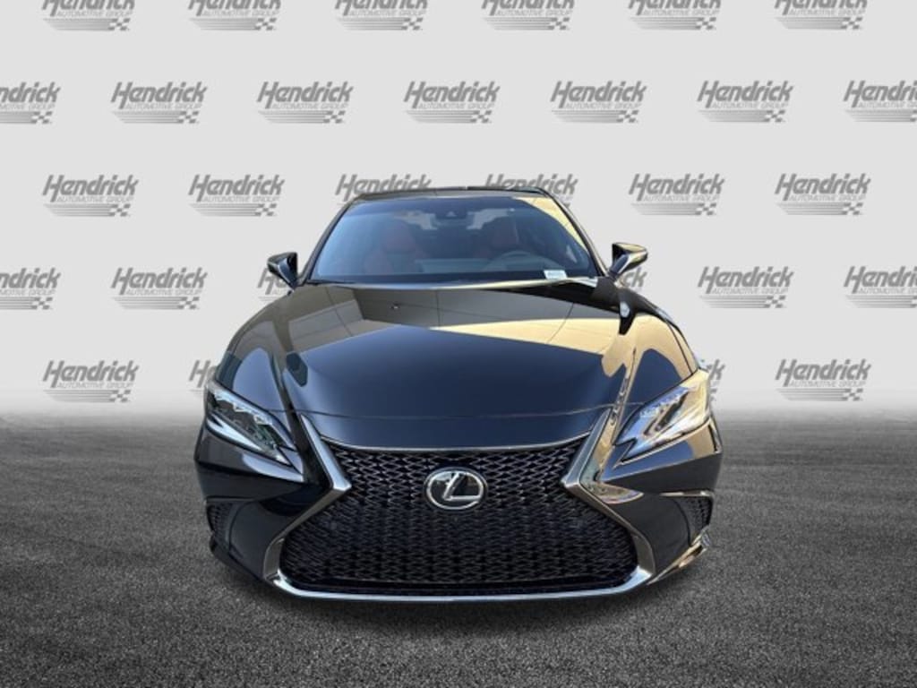 NAVIGATION W/MARK LEVINSON AUDIO 12.3 display, 3-year trial of Drive Connect w/Cloud Navigation, Intelligent Assistant, Destination Assist and 1,800-watt PurePlay premium surround sound audio system w/17 speakers, TRIPLE BEAM LED HEADLAMPS, INTUITIVE PARKING ASSIST & PANORAMIC VIEW MONITOR front/side/rear camera back monitor, auto braking protection, intelligent clearance sonar, rear pedestrian detection and parking support alert/brake, HANDS-FREE POWER OPEN/CLOSE TRUNK kick sensor, HEAD-UP DISPLAY (HUD). Lexus ES 350 F SPORT Handling with Obsidian exterior and CIRCUIT RED (F ALMINUM) interior features a V6 Cylinder Engine with 302 HP at 6600 RPM*.