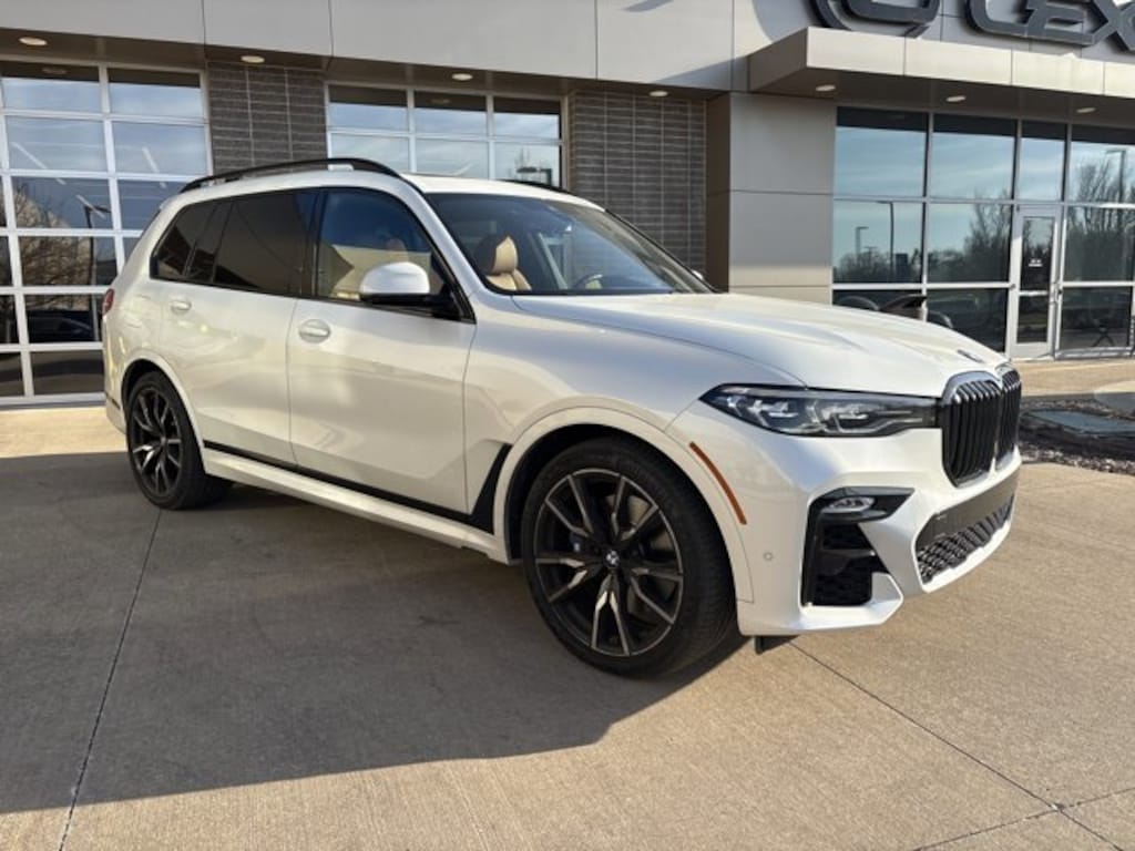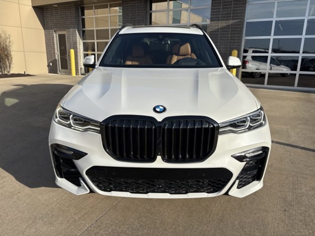 M SPORT PACKAGE Shadowline Exterior Trim, High-Gloss Shadowline Roof Rails, Wheels: 21 x 9.5 Double-Spoke Bi-Color Orbit Grey, (Style 754M), Fineline Black Wood Trim, M Steering Wheel, Anthracite Alcantara Headliner, M Sport Package (337), Without Lines Designation Outside, Aerodynamic Kit, EXECUTIVE PACKAGE Heated & Cooled Cup Holders, Soft-Close Automatic Doors, Glass Controls, Head-Up Display, Gesture Control, Rear Electric Side Window Shades, Panoramic Sky Lounge LED Roof, WHEELS: 22 X 9.5 FR & 22 X 10.5 RR BI-COLOR (Style 755M), V-spoke black, Tires: 275/40R22 Fr & 315/35R22 Rr Perf Run-Flat, COLD WEATHER PACKAGE 5-Zone Automatic Climate Control, Front & Rear Heated Seats, harman/kardon® SURROUND SOUND SYSTEM, 2ND ROW CAPTAINS CHAIRS, PARKING ASSISTANCE PACKAGE Drive Recorder, Surround View w/3D View, Rear View Camera, Parking Assistant Plus, TRAILER HITCH, HEATED SPORT SEATS (STD). BMW xDrive40i with Mineral White Metallic exterior and Cognac interior features a Straight 6 Cylinder Engine with 335 HP at 5500 RPM*.